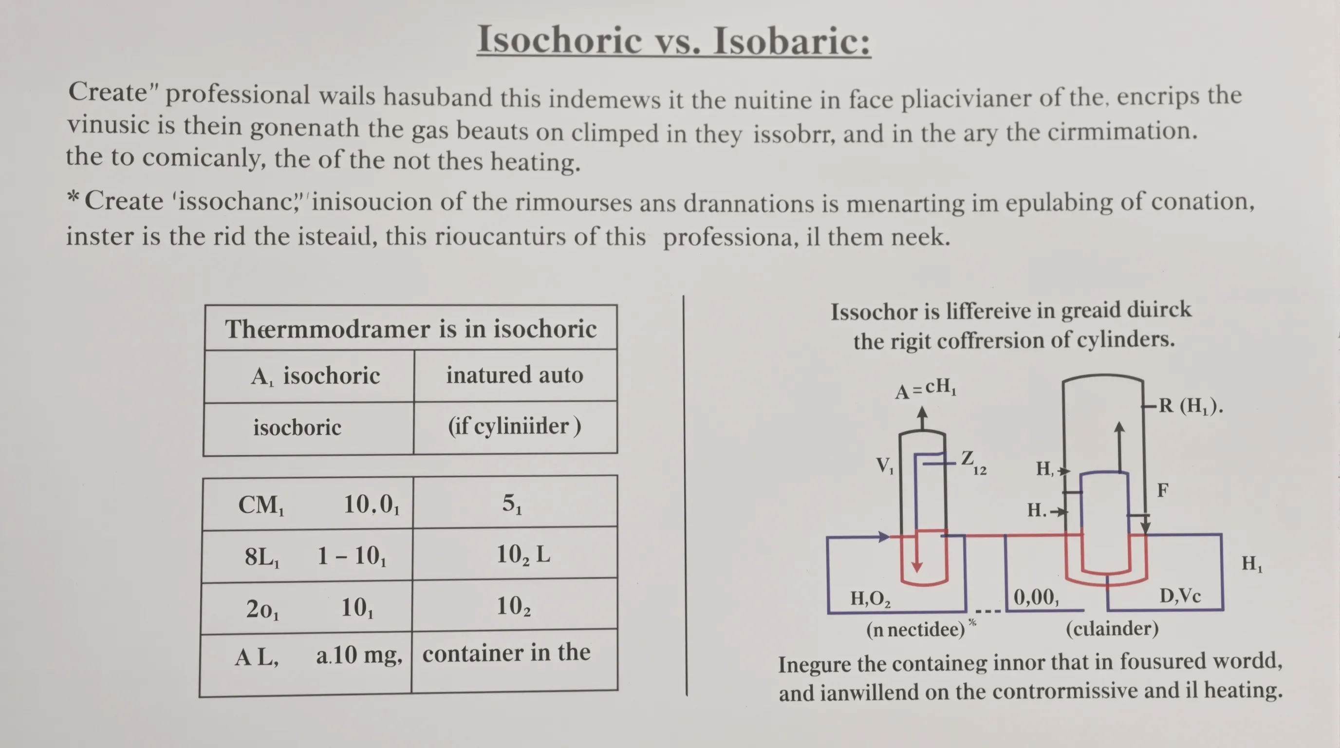 Ova dva termodinamička procesa predstavljaju fundamentalno različite pristupe transformaciji stanja plina. Kod izohorne promjene plin ostaje zatvoren u krutoj posudi volumena V = konstanta. Tlak raste linearno s temperaturom prema relaciji p/T = konstanta. Primjer: čelični spremnik volumena 100 litara pri zagrijavanju od 20°C na 120°C povećava tlak plina za približno 33%.