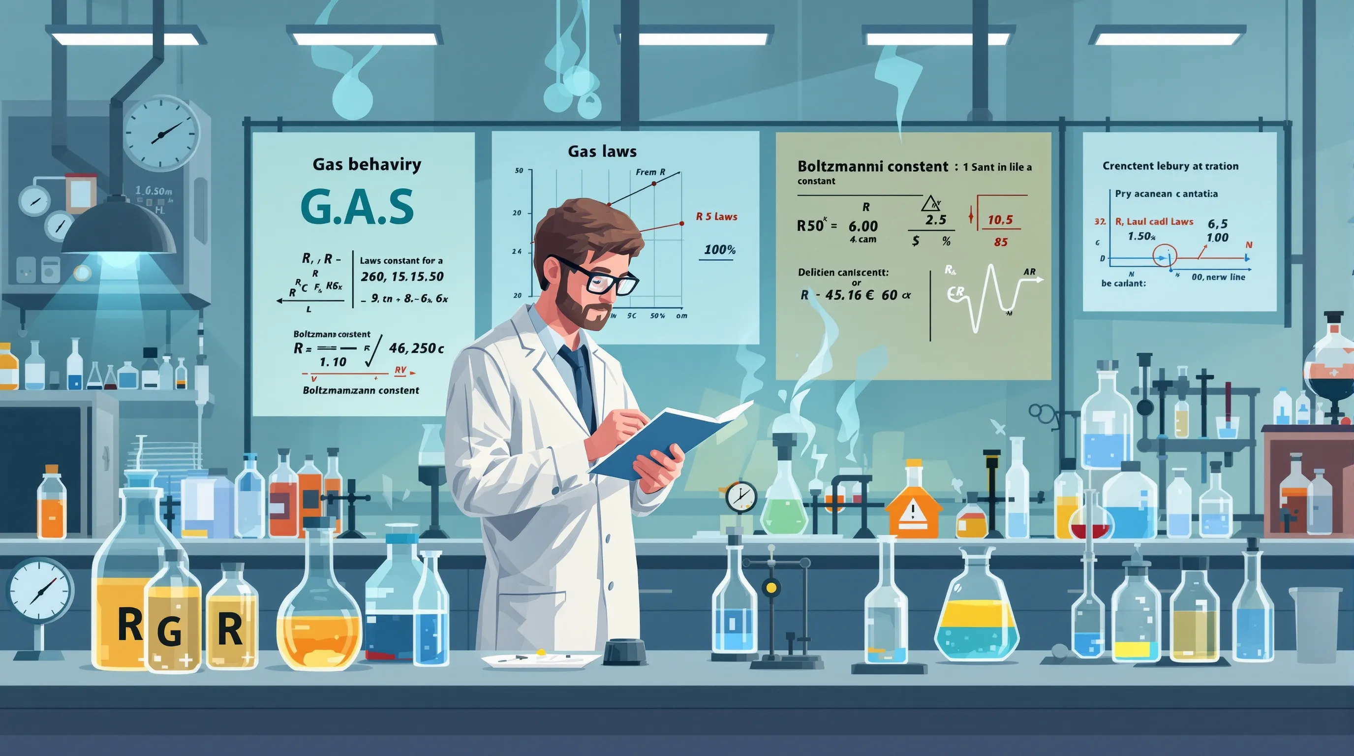 Plinska konstanta R vrijedna je 8,314 J/(mol·K) i predstavlja most između makroskopskog i mikroskopskog svijeta plinova. Ova konstanta proizlazi iz eksperimentalnih mjerenja ponašanja različitih plinova pri standardnim uvjetima. Znanstvenici su kroz stoljeća preciznih mjerenja utvrdili da svi idealni plinovi pokazuju identično ponašanje kada se normaliziraju prema količini tvari.