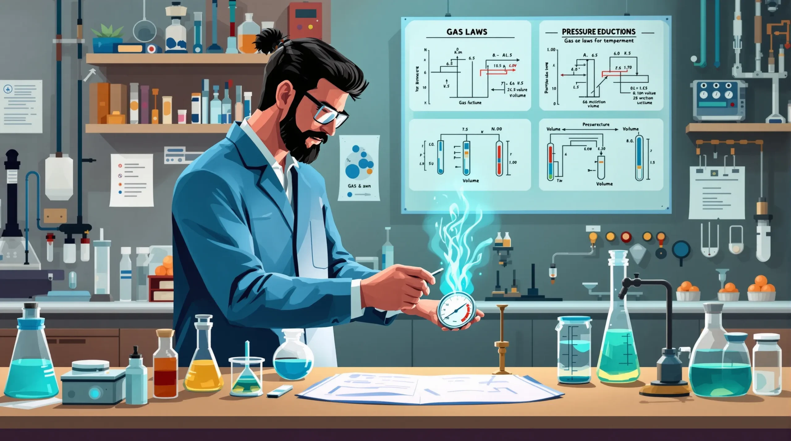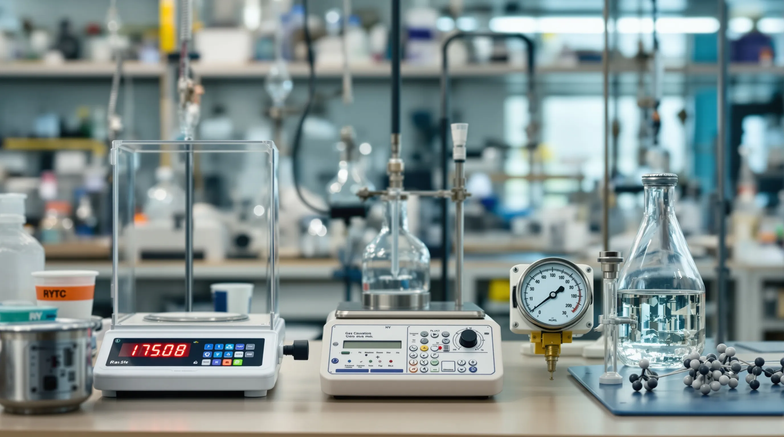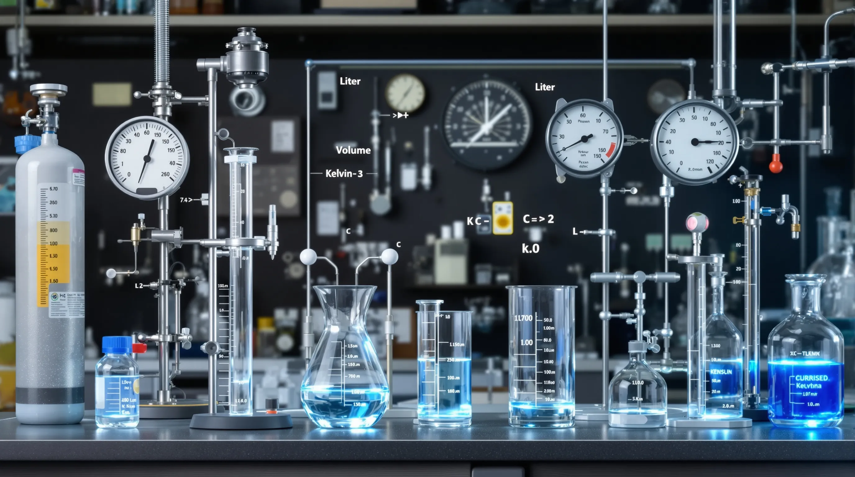 Mjerenje parametara zahtijeva precizne instrumente. Manometri mjere tlak, termometri temperaturu, a analitičke vage određuju masu za izračun količine tvari.